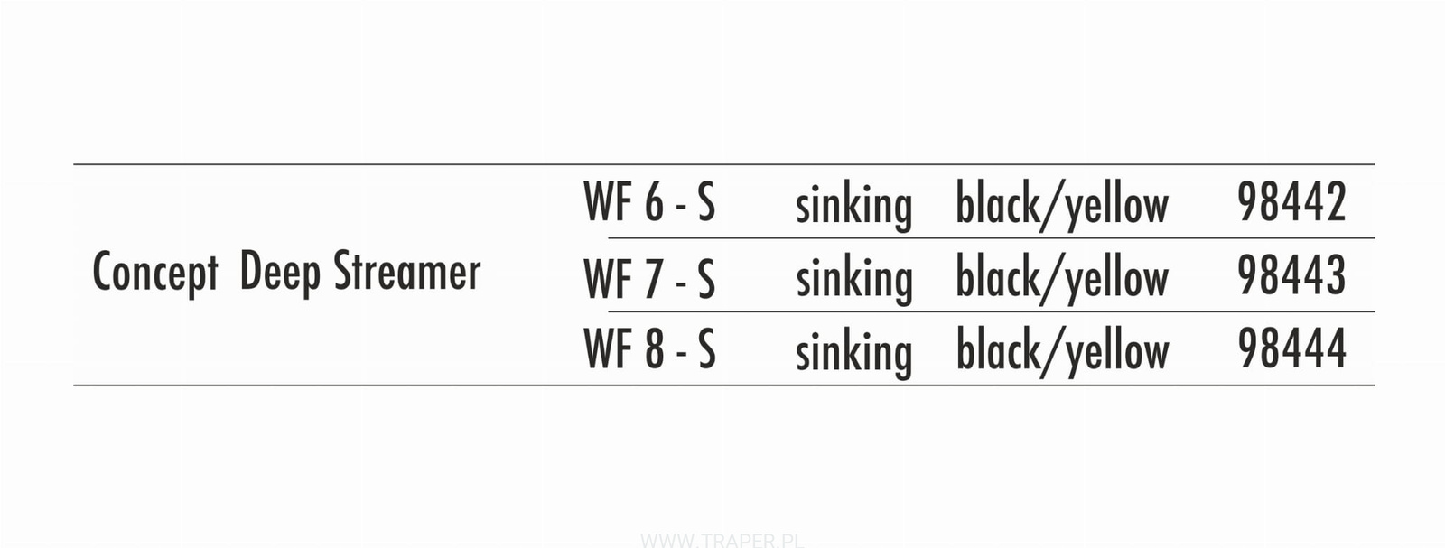 Specjalistyczna linka z szybko tonącym 14 stopowym tipem, intermedialną 6 stopową środkową częścią głowicy i pływającą tylną częścią głowicy oraz runningiem. Przeznaczona do łowienia w rzekach z głębokim i szybkim nurtem. Dzięki specjalnej konstrukcji „stripowanie” powoduje start przynęty do powierzchni, co często prowokuje ryby do brania. Linką tą z powodzeniem możemy łowić też w jeziorach zarówno z brzegu, jak i z łodzi. Trwała i gładka powierzchnia ułatwia rzuty i zapewnia długie użytkowanie. Oba końce linki zakończone są pętlami, co ułatwia montaż zestawu z podkładem i przyponem. Oznaczenie rodzaju i klasy linki nadrukowane jest w przedniej części głowicy.