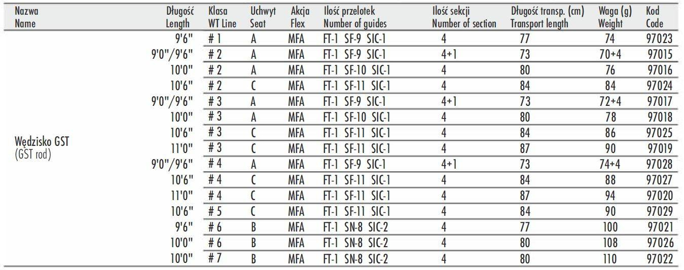 Wędki muchowe Traper GST to wędziska zawodnicze zaprojektowane przez Mistrzów Świata i Europu - Kadrę Narodową. Wysokomodułowy japoński blank Carboflex 430 został pokryty matową powłoką lakieru. Nie powoduje to odbicia światła, które płoszy ryby. Idealny rozstaw i wielkość przelotek TITANIUMTM sprawia, ze akcja jest równomierna i niezwykle szybka. Płynne, harmonijne ugięcie sprawia, ze holowanie ryby jest pewne i bezpieczne bez ryzyka jej utraty. W wędzisku zastosowano rękojeść z portugalskiego korka AAAA zakończonego trwałą mieszanką korka z gumą. Uchwyt do kołowrotka jest z wytrzymałego aluminium wykonanego w technologii CNC. Podstawą uchwytu jest mocna, ultralekka tuleja z włókna węglowego. W konsekwencji właściwego i przemyślanego doboru wszystkich elementów tej konstrukcji mamy do czynienia z perfekcyjną wędką, która zadowoli najbardziej wytrawnych "graczy". W zestawie znajduje się dzielona cordurowa tuba i miękki pokrowiec służący do transportu w tubach zbiorczych. Wędka jest objęta 25-letnią gwarancją serwisową. Wszystkie te zalety sprawiają, że jest to bardzo dobra wędka muchowa do nimfy.